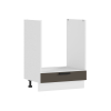 В нижней части предусмотрен небольшой выдвижной ящик для хранения противней, сковород и другой утвари. Регулируемые ножки придают конструкции устойчивость.