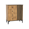 Выдвижные ящики отлично подходят для белья, аксессуаров и разных мелочей. За реечным фасадом спрятано отделение с полками, которые разместят более объемные предметы обихода.